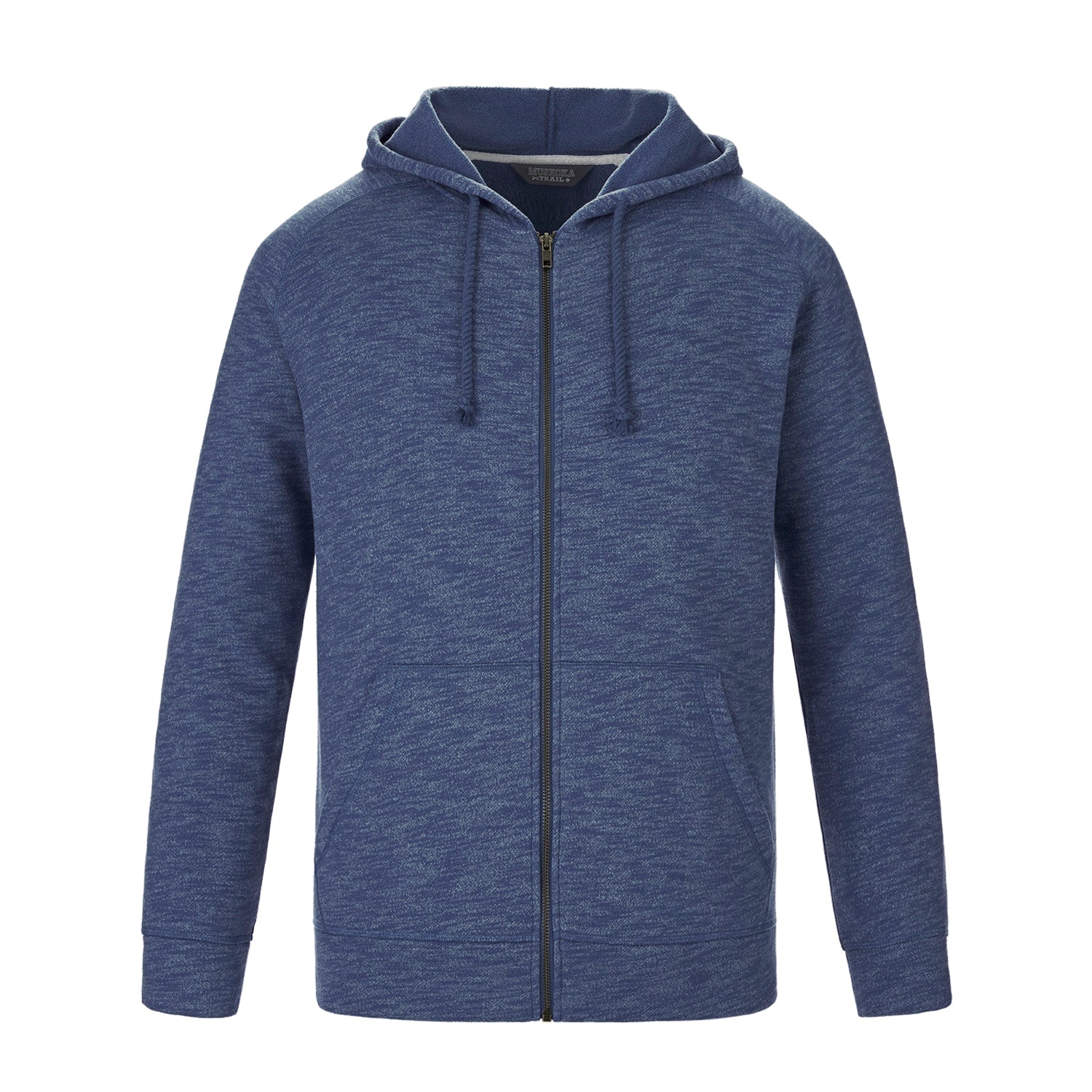 240 g/m² – 7,1 oz/ yd² – 2 – 12 oz/yd². Molleton chiné gratté, 60 % coton, 40 % polyester recyclé. Poche kangourou dissimulée sous la poche kangourou. Cordon de serrage ajustable à la capuche. Poignets et ourlet doublés. Fermeture éclair YKK.