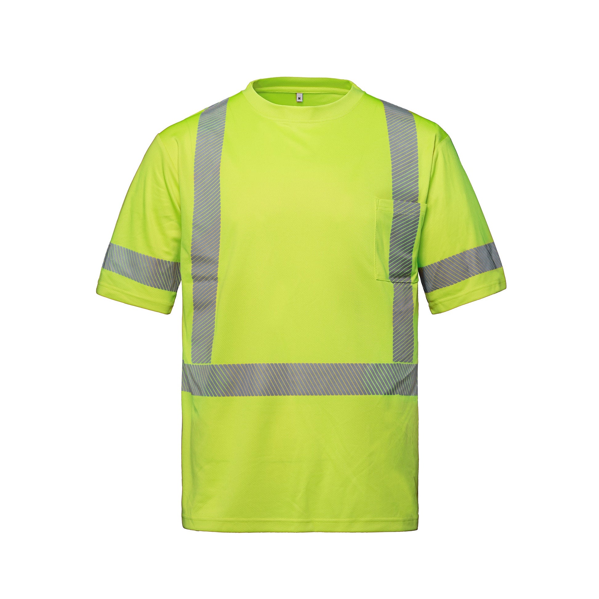 130 gsm – 3.8 oz./yd² – 6.5 oz./lin. yd 100% polyester birdseye mesh with wicking finish and UPF 50+ rated sun protection. Rib knit neckline. Chest pocket. 2” retroreflective stripe on front and back body and sleeves – segmented stripes for added flexibility. Meets CSA standards.