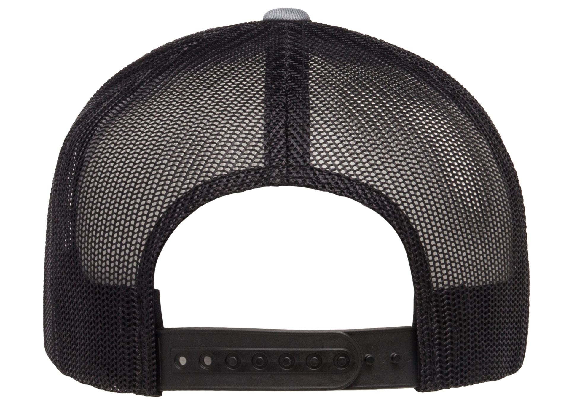 24/7 All Day Every Day / YP Classics Snap Back Trucker Cap. Front Panels - 74% Polyester, 26% Cotton twill. Mid and Back Panels - 100% Polyester premium mesh, 6-panel, matching 7-position adjustable snap back closure, mid profile, structured, permacurv visor with 8 rows of topstitching, matching under visor, sewn in Yupoong label, tear-away 24/7 All Day Every Day label. Comes with tear-away embroidery backing for easy decoration. Made in Bangladesh