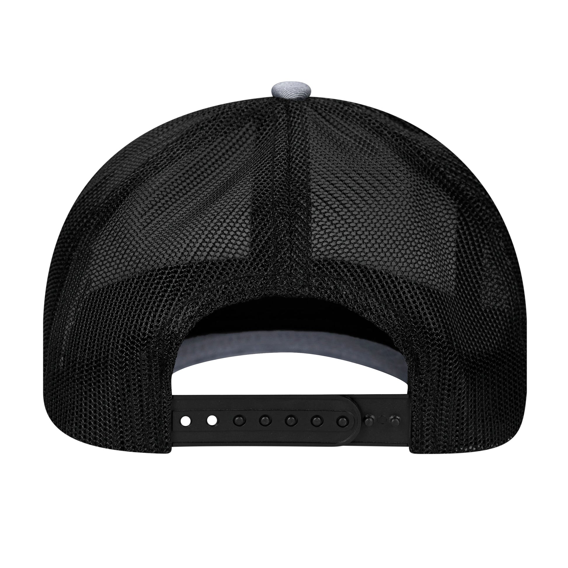 Front Panels - 100% cotton twill, Mid and Back panels - 100% nylon mesh, 6-panel adjustable snap back closure mid profile, structured, pre-curved visor with 8 rows of topstitching, tear-away label. Comes with tear-away embroidery backing for easy decoration. Made in Vietnam
