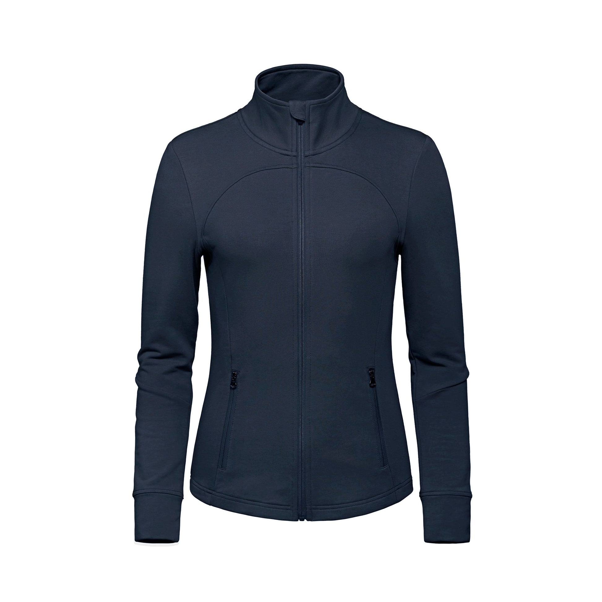 275 GSM - 8.1 oz/yd2 - 13.5 oz/lin. yd. 64% cotton, 30% recycled polyester, 6% spandex. Stretch french terry with wicking and anti-bacterial finishes. YKK front zipper and lower pocket zippers. Front and back shoulder yoke seam detail. Self-fabric sleeve cuff. Seam detail on sleeve at elbow. Knit back neck tape, tear-away label.