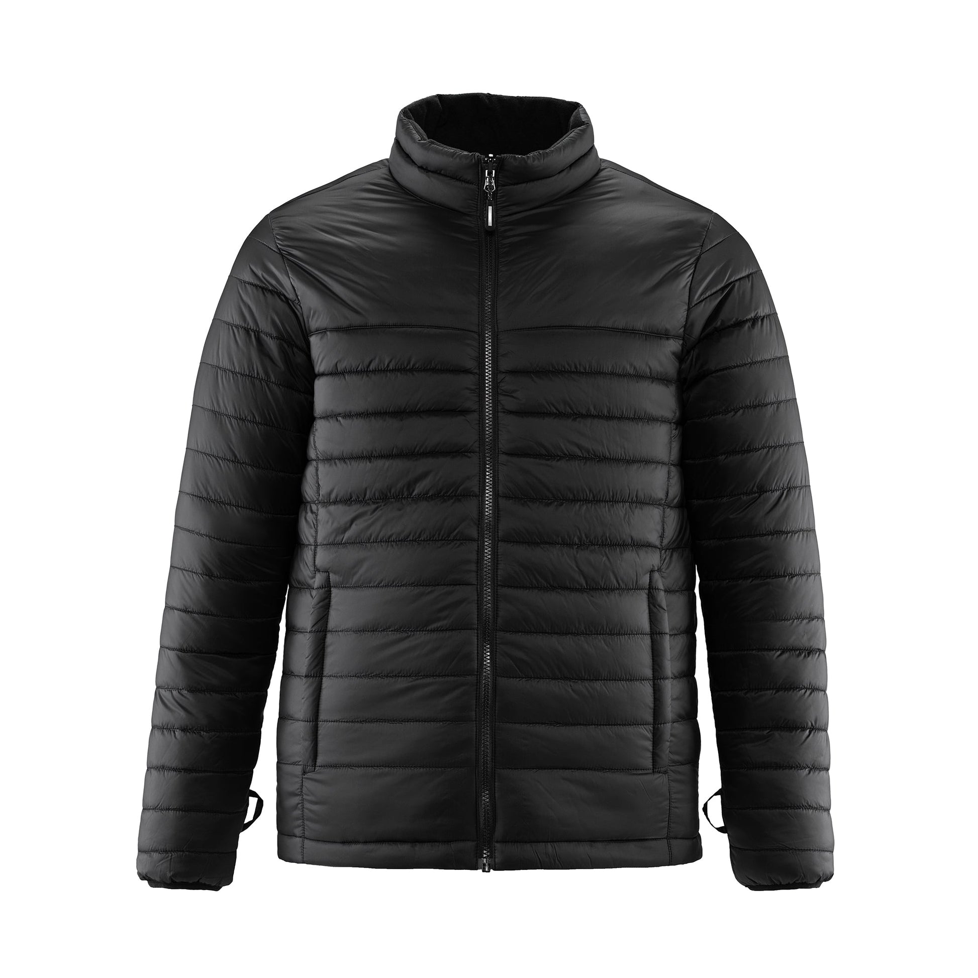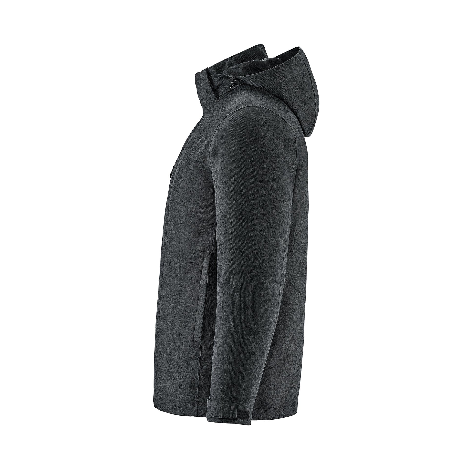 Outer jacket: 245 gsm – 7.2 oz./yd² – 12 oz./lin. yd 100% recycled polyester twill with 10000 mm waterproof rating, 5000 gsm breathability rating, PFC -Free, wind resistant and water repellent finish. Inner jacket: 37 gsm – 1.1 oz./yd² – 2 oz./lin. yd 100% nylon taffeta with water repellent finish. Insulation: lightweight 100% recycled polyester. Outer