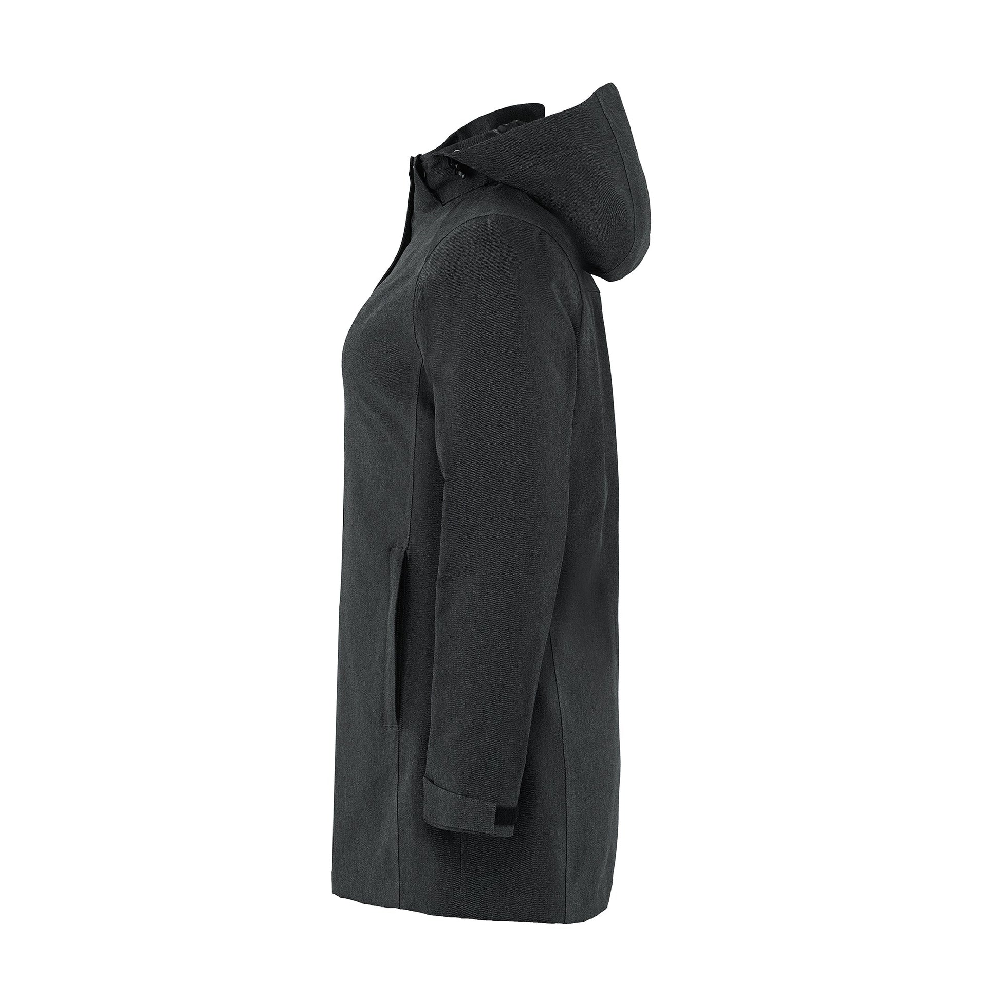 Outer jacket: 245 gsm – 7.2 oz./yd² – 12 oz./lin. yd 100% recycled polyester twill with 10000 mm waterproof rating, 5000 gsm breathability rating, PFC -Free, wind resistant and water repellent finish. Inner jacket: 37 gsm – 1.1 oz./yd² – 2 oz./lin. yd 100% nylon taffeta with water repellent finish. Insulation: lightweight 100% recycled polyester. Outer