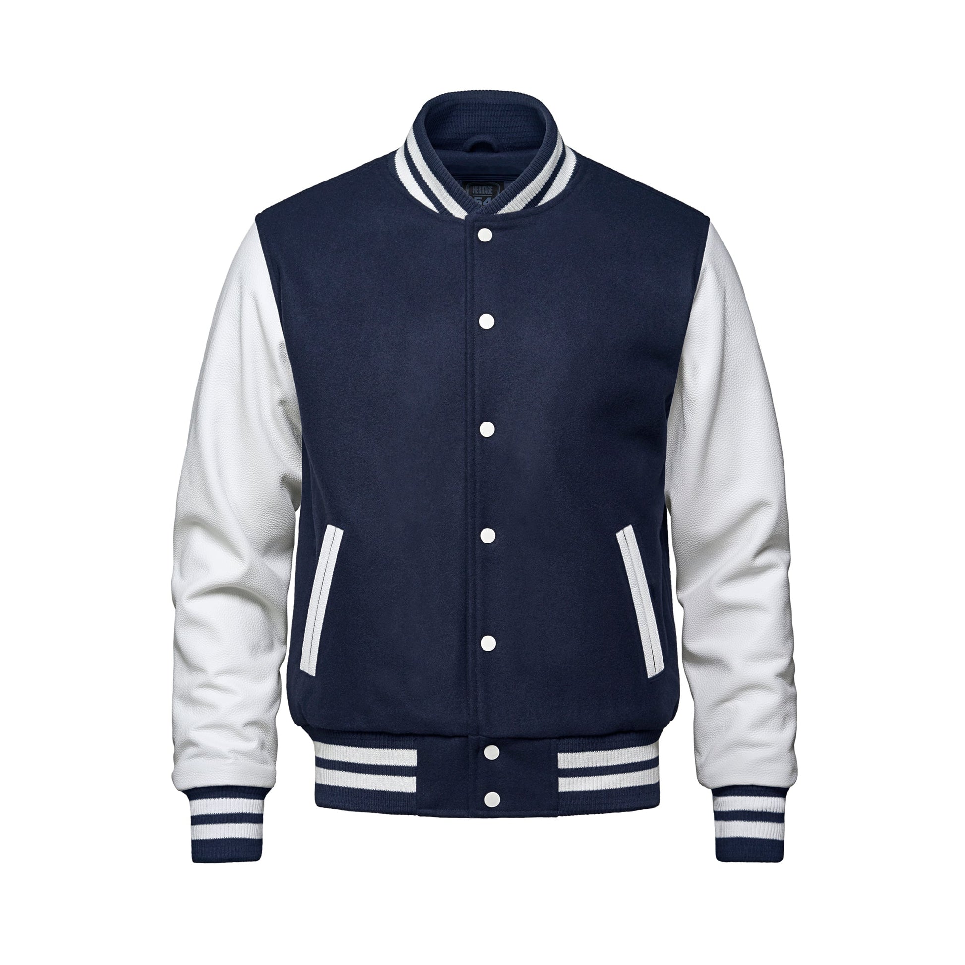 Body: 500 gsm - 14.8 oz./yd² - 25 oz./lin. yd 75% wool, 20% nylon, 5% other melton, Sleeves: cow hide, Insulation: 120 gsm 100% polyester. Non-quilted black satin kasha lining. Cadet rib knit collar, waistband, and cuff. Leather trim on exterior welt pockets and interior chest pocket. Matte finish snap front closure. Clam Shell zocket embroidery access.