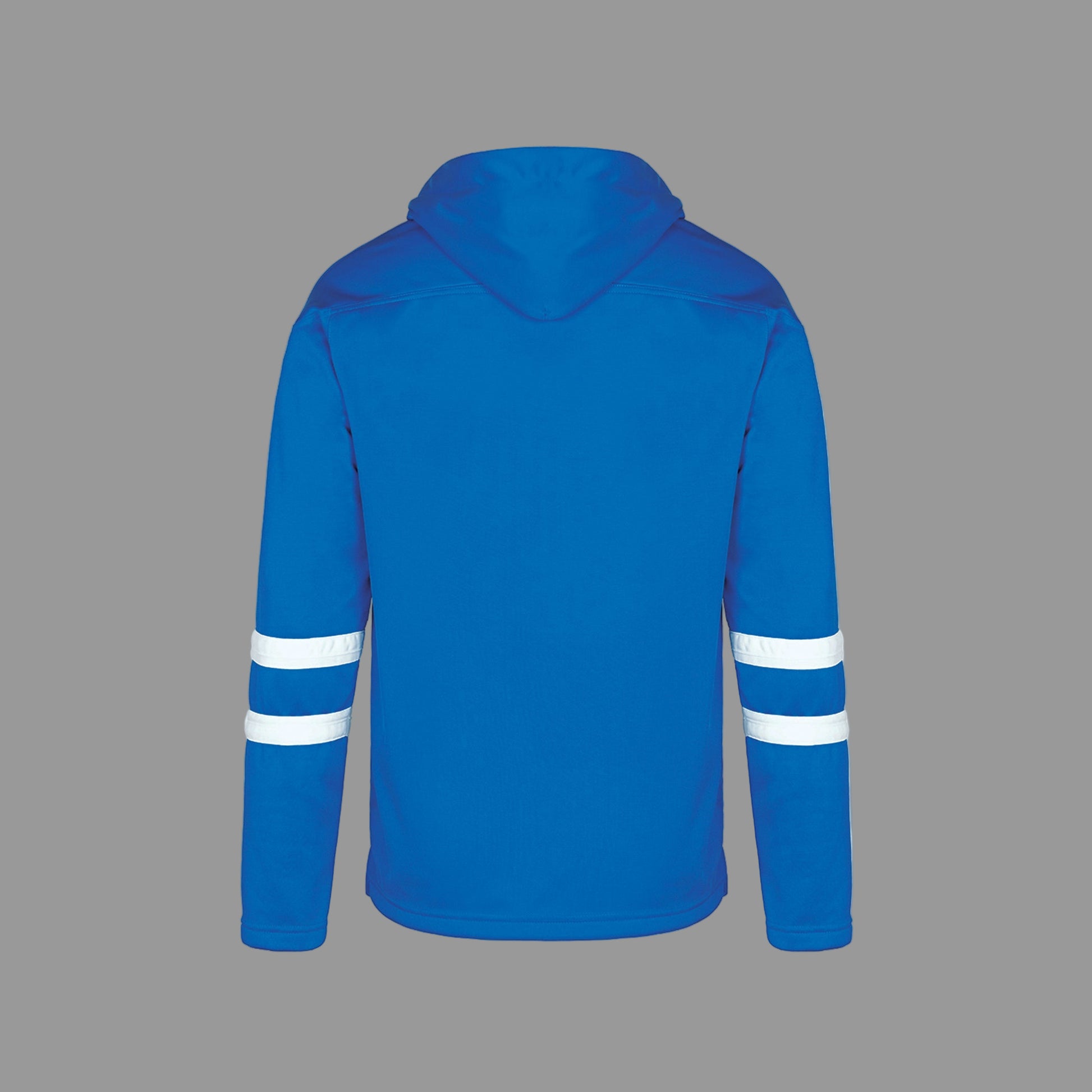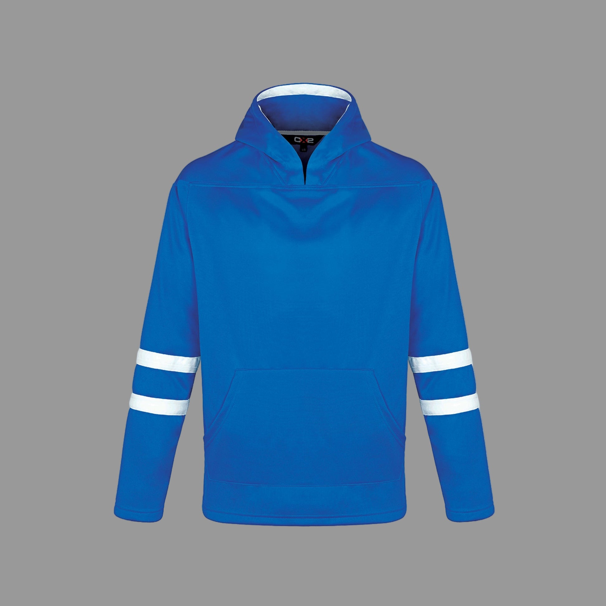 260 gsm – 7.7 oz./yd2 – 13 oz./lin. yd 100% polyester one side brushed fleece, anti-pill finish. Jersey lined hood. Kangaroo pocket. Contrast striping on sleeves and inside hood opening. Contrast taping at back neck and hem vents. Phone pocket hidden under kangaroo pocket. Adjustable hockey lace at neckline (not available on youth). Show your team spirit, additional hockey lace colours sold separately. V split hemmed body.