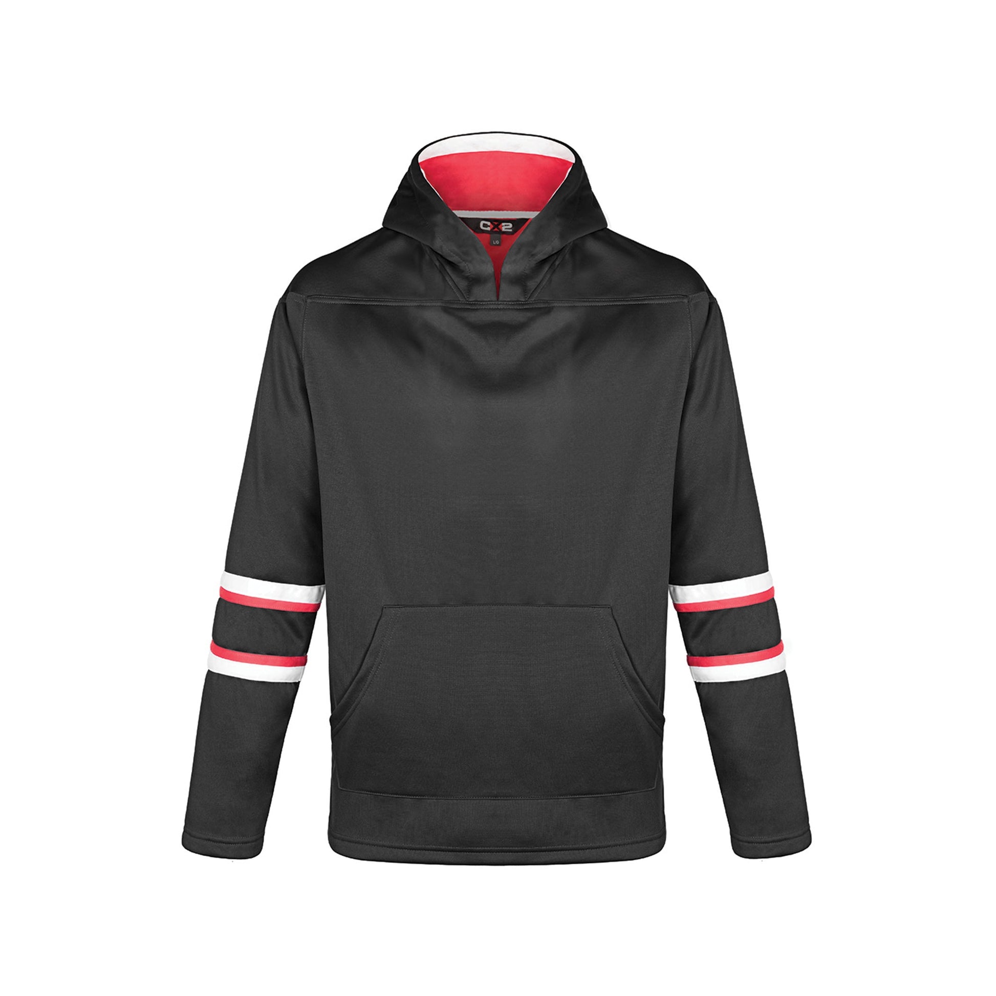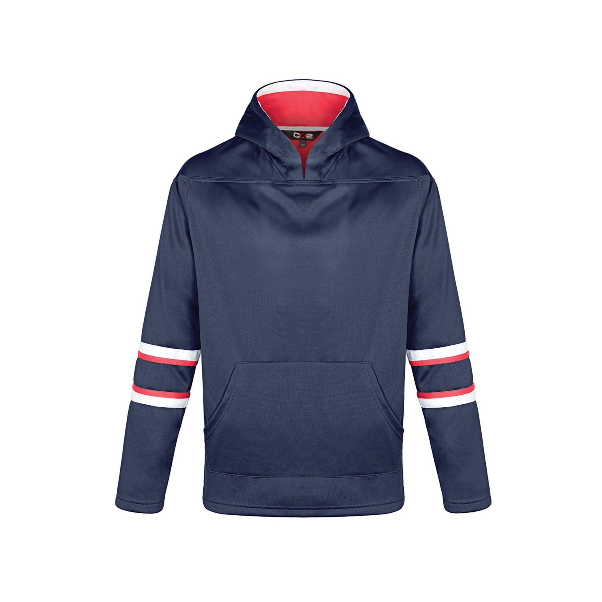 260 gsm – 7.7 oz./yd2 – 13 oz./lin. yd 100% polyester one side brushed fleece, anti-pill finish. Jersey lined hood. Kangaroo pocket. Contrast striping on sleeves and inside hood opening. Contrast taping at back neck and hem vents. Phone pocket hidden under kangaroo pocket. Adjustable hockey lace at neckline (not available on youth). Show your team spirit, additional hockey lace colours sold separately. V split hemmed body.
