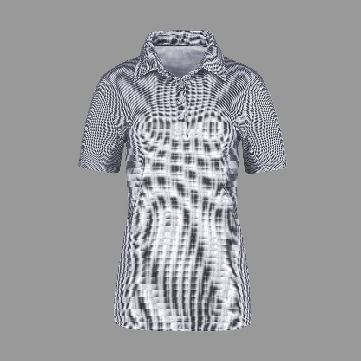 150 gsm – 4.4 oz./yd2 – 7.5 oz./lin. yd 100% polyester carbon peached interlock with wicking, anti-bacterial and quick dry finishes. Features include self fabric 2pc collar, button placket and side seam splits